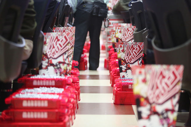 すでに多くの赤いオブジェが通路を席巻し、撮れ高をアピール。