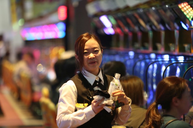 この日も通路に出現した、幸福の黄色いドル箱を、「これでもか!」と積み上げる!