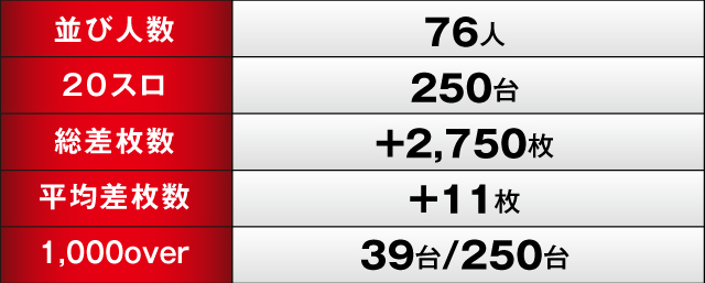 この日の結果は総差枚数+2,750枚、1000overが39台と上々の成績で連勝を伸ばすことができた。同店の2022年の「英雄の軌跡」を締めくくるにふさわしい内容であったが、ぜひこの勢いを2023年も続けていただきたい。来年も同店から目が離せない!!