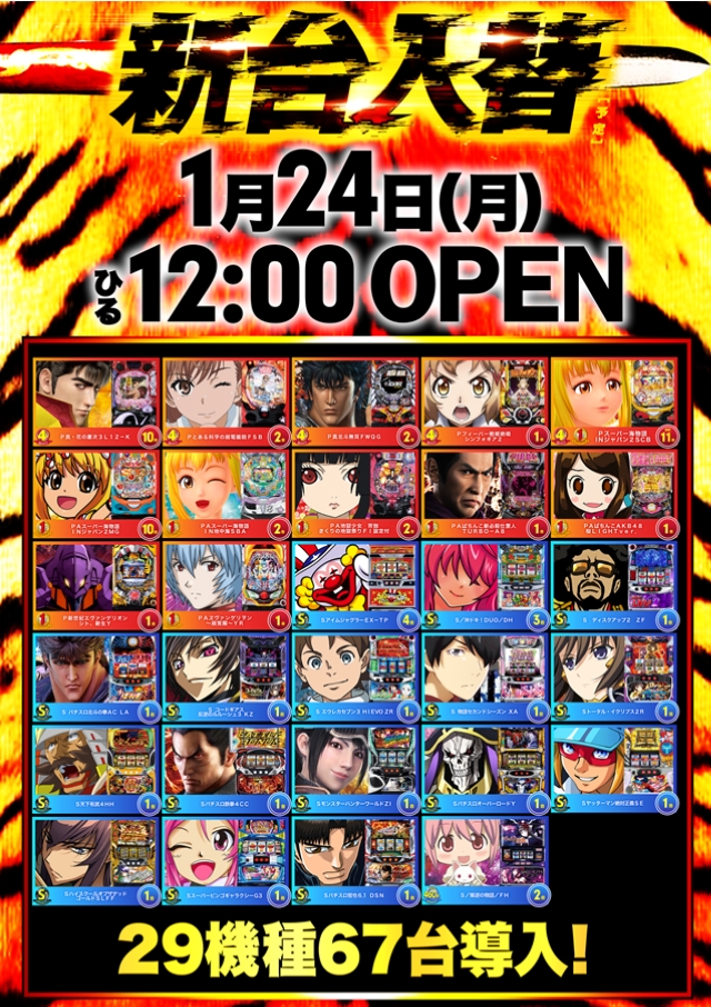 1月24日(月)ひる12時開店!新台入替予定