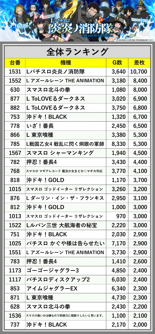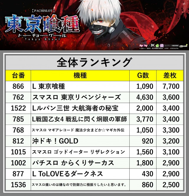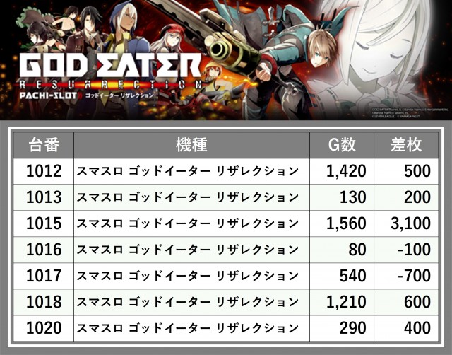 厳選された取材対象機種をはじめ、その他スロット全体から好記録が飛び出した!プレイヤーが楽しんだ1日を下記データにて振り返ってみて欲しい。