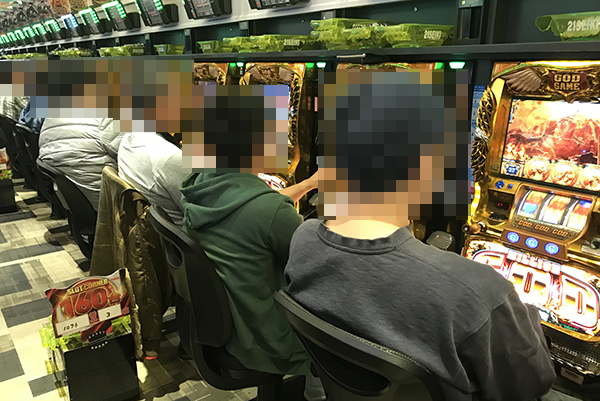 16時頃のパチスロで、ひときわ活気づいていたのが「ミリオンゴッド-神々の凱旋-」と「バジリスク~甲賀忍法帖~絆」。華麗なパフォーマンスを披露するプレイヤーが多く、注目を集める存在となっていた。