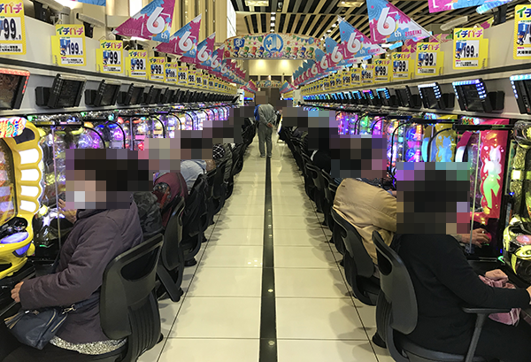 この日も大勢のプレイヤーが来店しており、パチンコとパチスロの各シマから明るい雰囲気が伝わってきた。