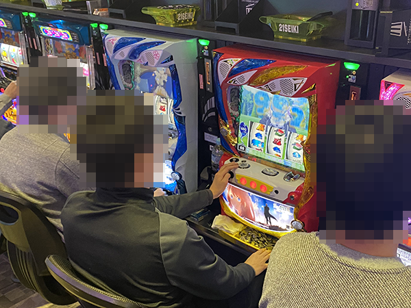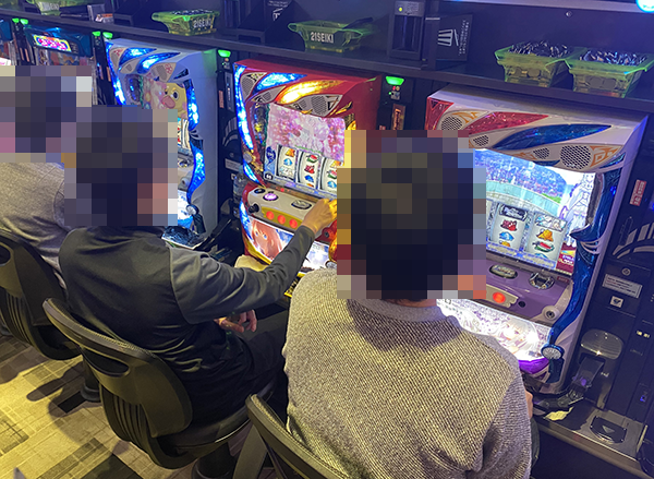 さまざまな機種が支持されていたうえに、笑顔で遊技をおこなっているプレイヤーが多く、ホール全体がにぎわっていた。