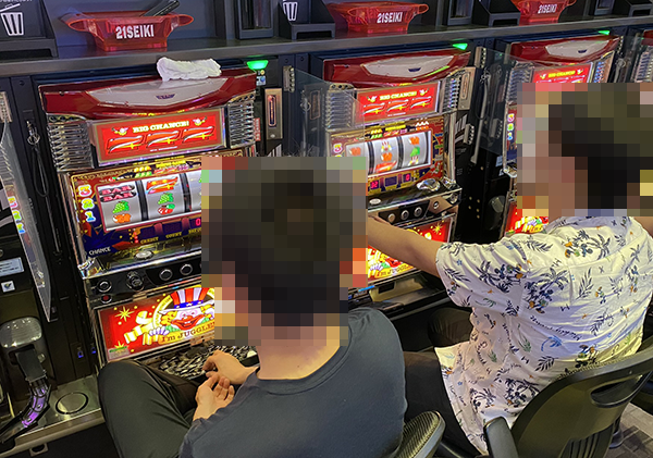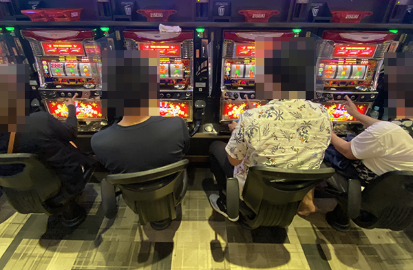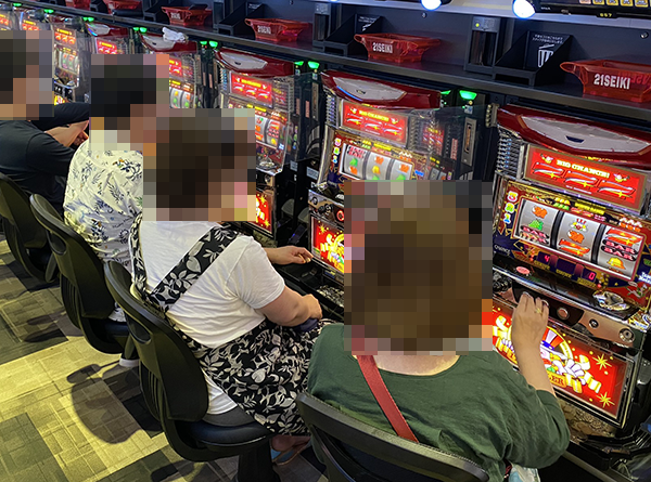 「沖ドキ!」で遊技をおこなっているプレイヤーたちも印象的であった。