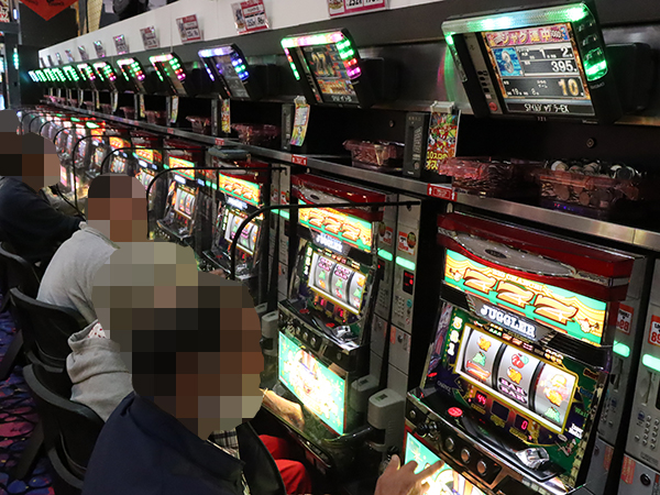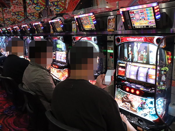 取材時は多くのプレイヤーが来店。パチンコ・パチスロともに、様々な機種が支持を得ていた。