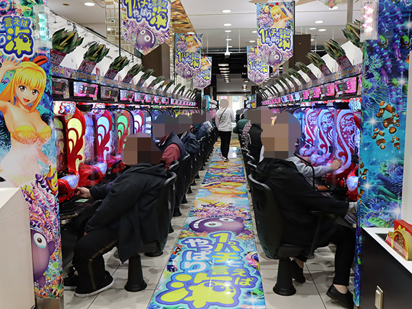 プレイヤーでにぎわう店内を見渡すと、パチンコ・パチスロともに明るい雰囲気が漂っていた。