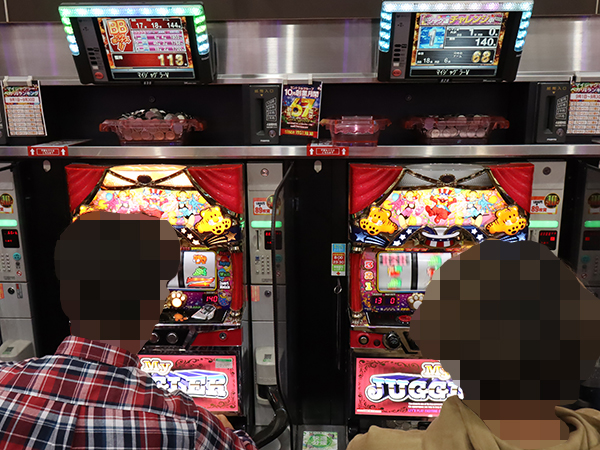 1000円/89枚パチスロに目を向けると「マイジャグラーⅤ」や「アイムジャグラーEX」で華やかな光景が広がり、プレイヤーたちの笑顔から、納得の遊技をできていることがうかがえた。