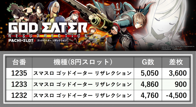 厳選された取材対象機種をはじめ、その他スロット全体から好記録が飛び出した!プレイヤーが楽しんだ1日を下記データにて振り返ってみて欲しい。