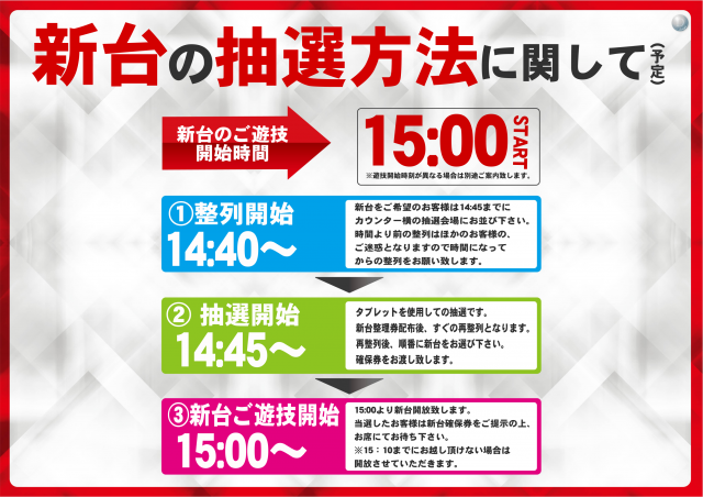 本日7月24日(月) 新台入替 8時開店(予定)