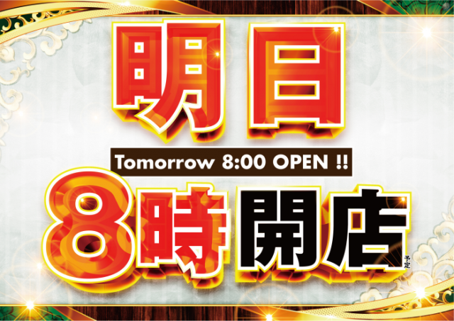明日8月7日(月) 新台入替 10時開店(予定)