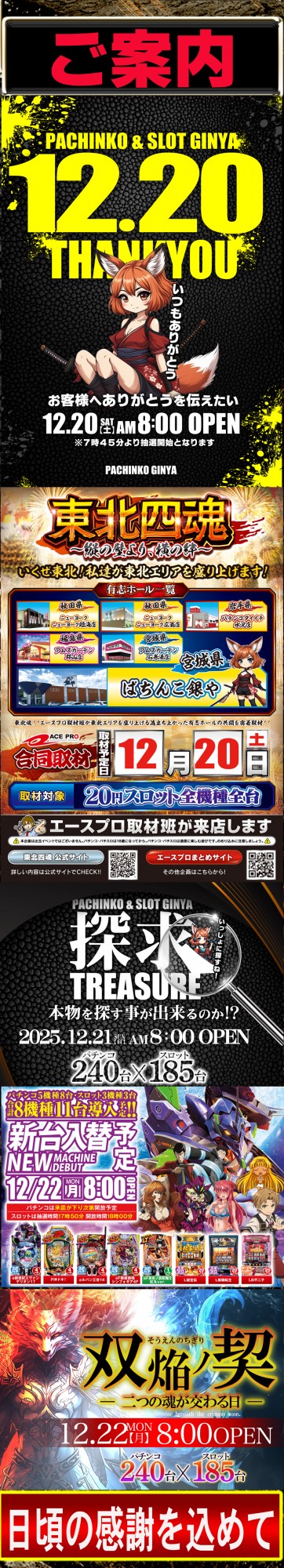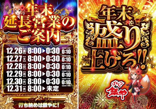 ぱちんこ銀や「12月22日」ご案内