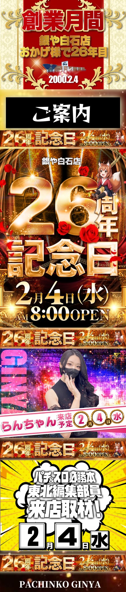 祝❢2月4日ぱちんこ銀や26周年‼