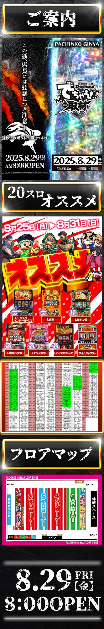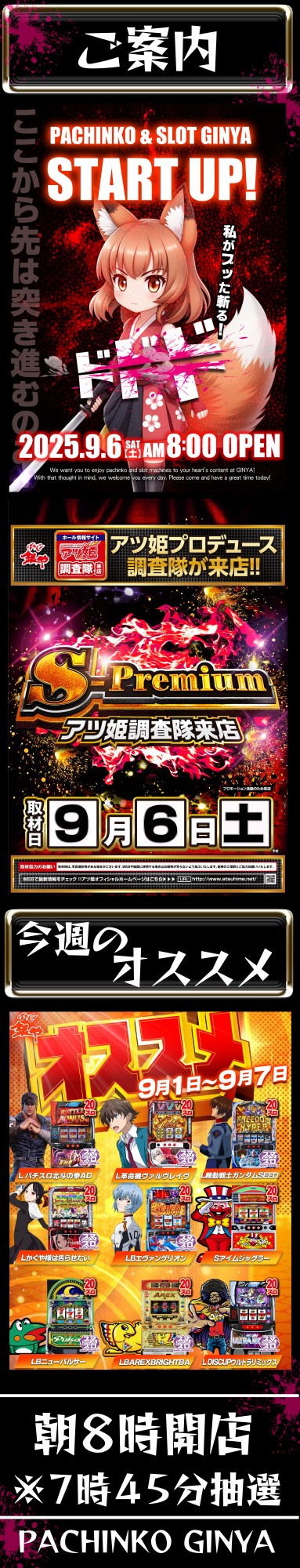「9/1~9/7」パチンコ銀や 20円スロットオススメ♪
