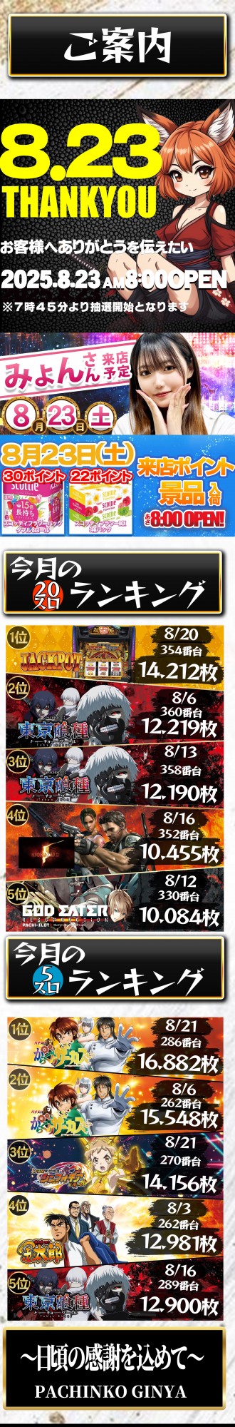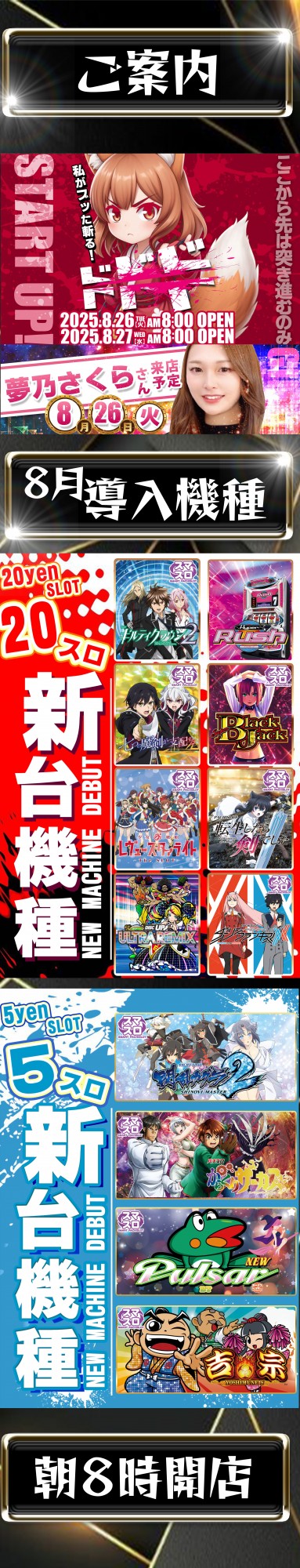 明日8月18日新台入替(予定) 8時開店