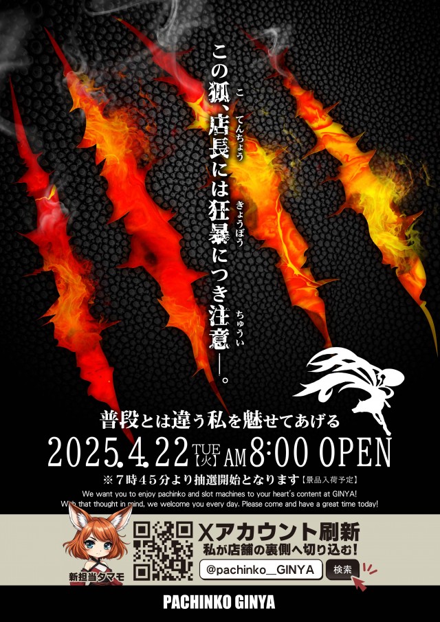 ぱちんこ銀や!狐!朝8時開店!抽選7:45
