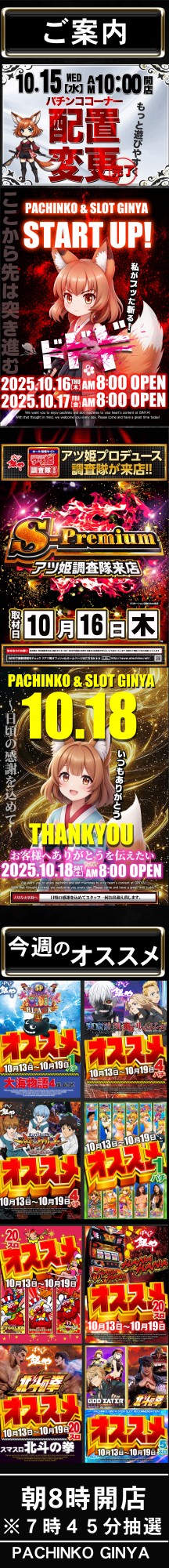 🌈「本日」新台入替 (予定) 8時開店🌈