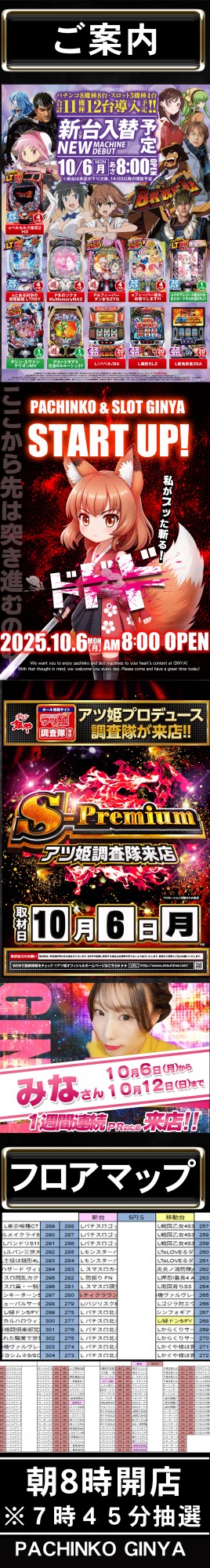 10/6~10/12 みなさん来店(予定) 8時OPEN