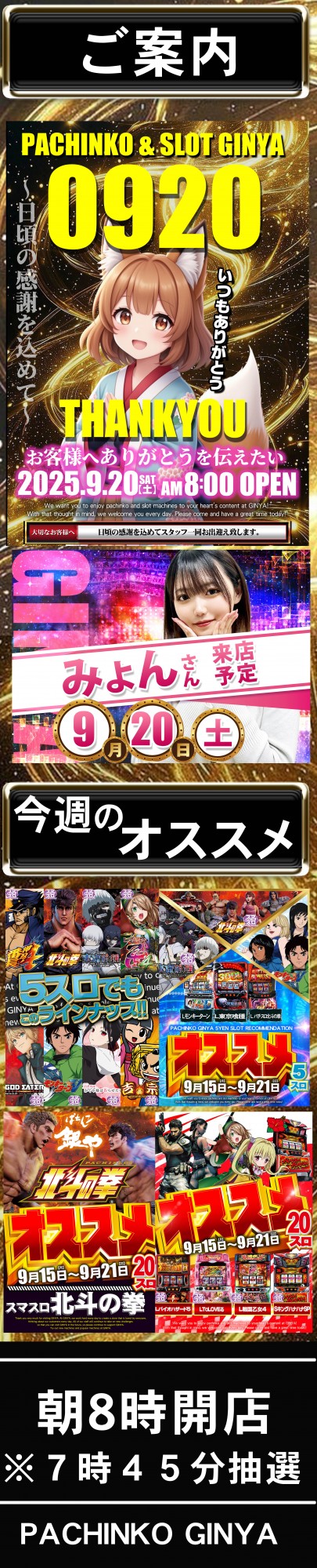 ぱちんこ銀やのオススメ♪ 9/15~9/21