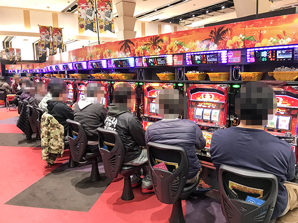 20円パチスロに目を向けると、「押忍!番長3」や「アナザーゴッドハーデス-奪われたZEUSver.-」、「ミリオンゴッド-神々の凱旋-」が盛況。理想的な展開を迎えるプレイヤーが多く、シマ全体に華やかな光景が広がっていた。