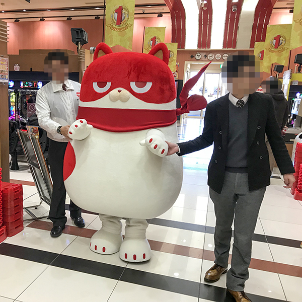 この日は、同店のイメージキャラクターであるにゃんまるが来店。3月1日に周年を迎えることもあり、店内は大盛り上がりとなっていた。