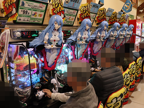 「PAシン・エヴァンゲリオン 99 遊タイム付 ごらくver.」といった自社開発機では好調なプレイヤーが見られ、実に華やかな光景が広がっていた。