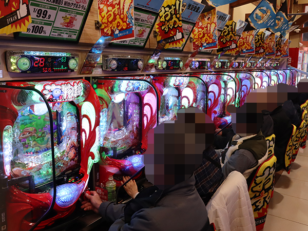 50円/86玉パチンコの支持も厚い。遊技を楽しむプレイヤーたちの姿が印象に残っている。