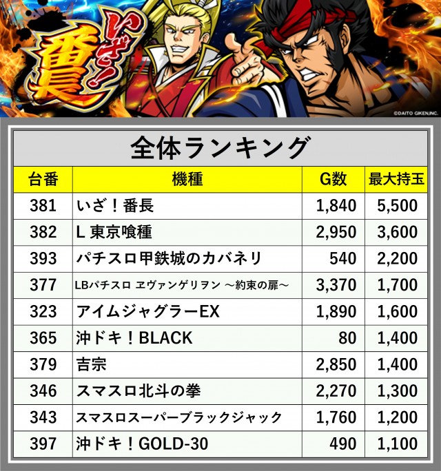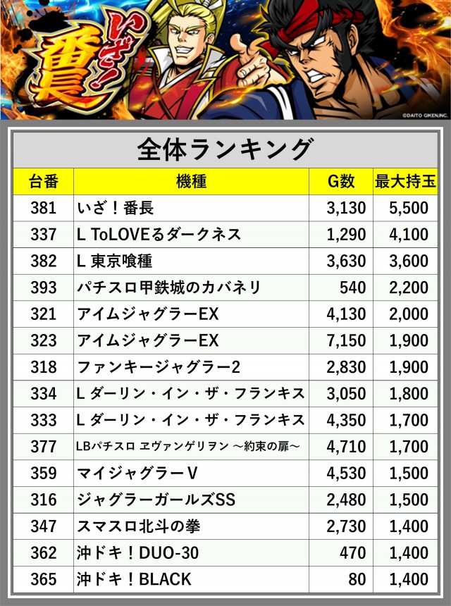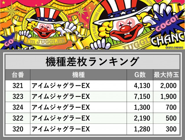 厳選された取材対象機種をはじめ、その他スロット全体から好記録が飛び出した!プレイヤーが楽しんだ1日を下記データにて振り返ってみて欲しい。
