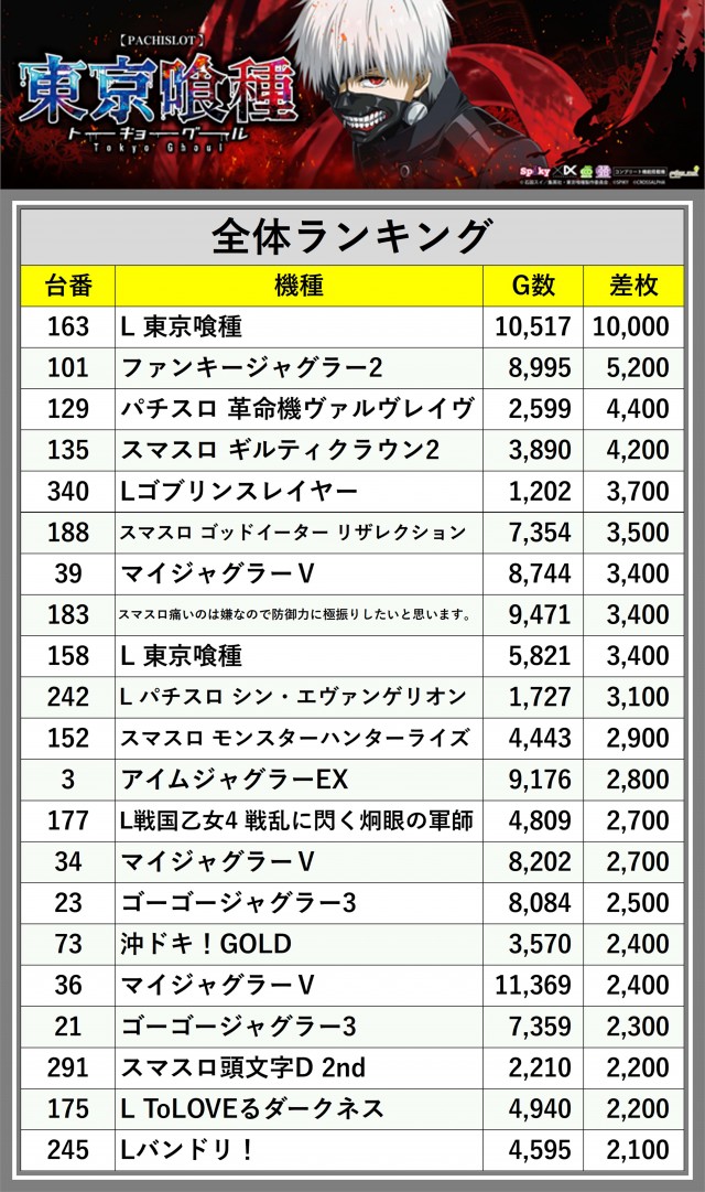 厳選された取材対象機種をはじめ、その他スロット全体から好記録が飛び出した!プレイヤーが楽しんだ1日を下記データにて振り返ってみて欲しい。