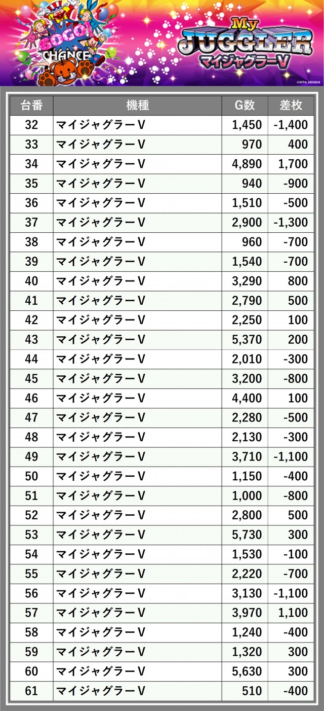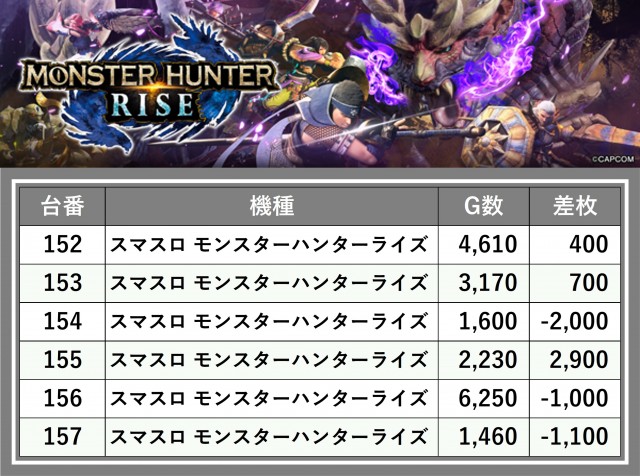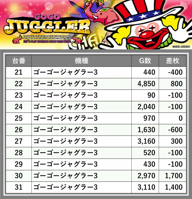 厳選された取材対象機種をはじめ、その他スロット全体から好記録が飛び出した!プレイヤーが楽しんだ1日を下記データにて振り返ってみて欲しい。