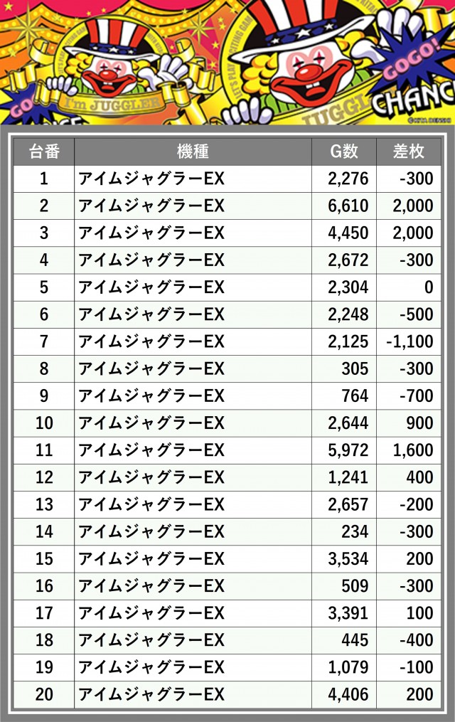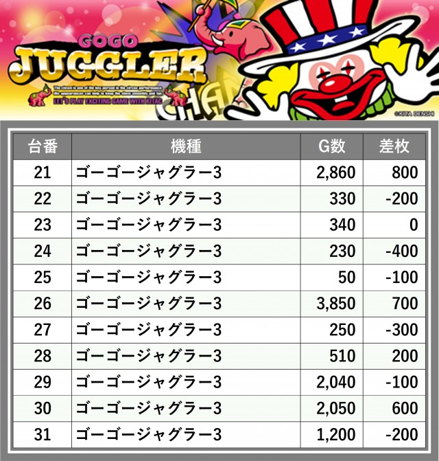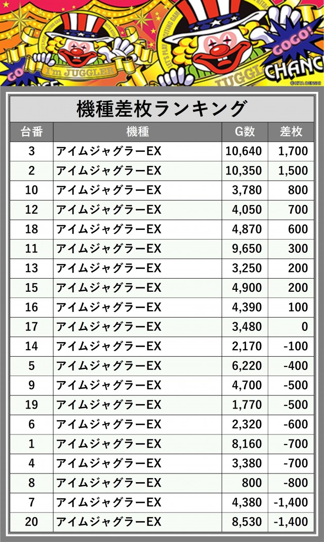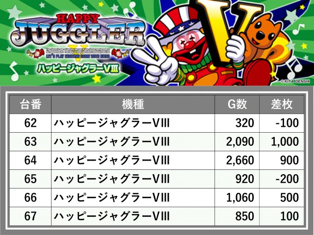 厳選された取材対象機種をはじめ、その他スロット全体から好記録が飛び出した!プレイヤーが楽しんだ1日を下記データにて振り返ってみて欲しい。