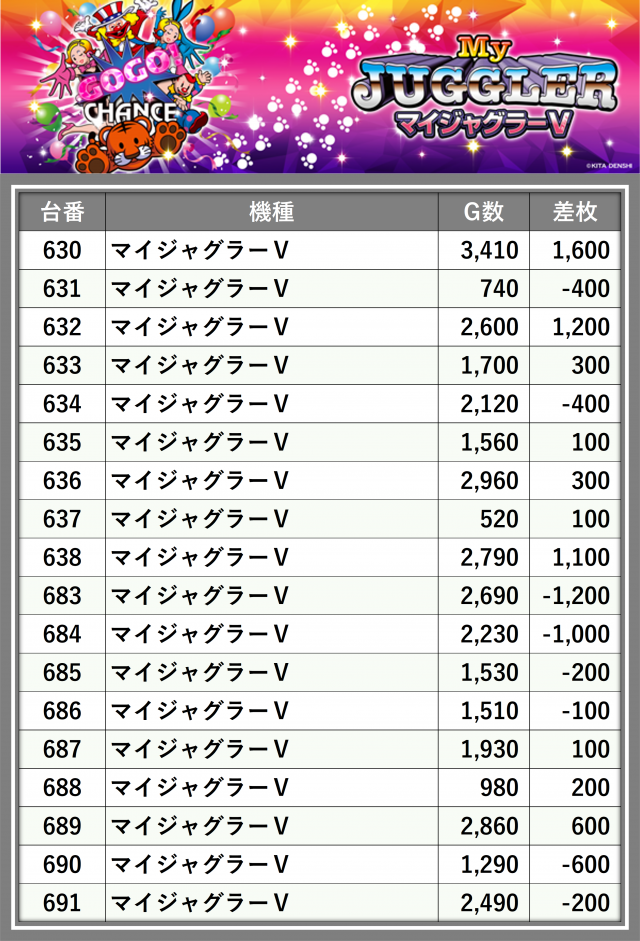 ※差枚数順に掲載しています