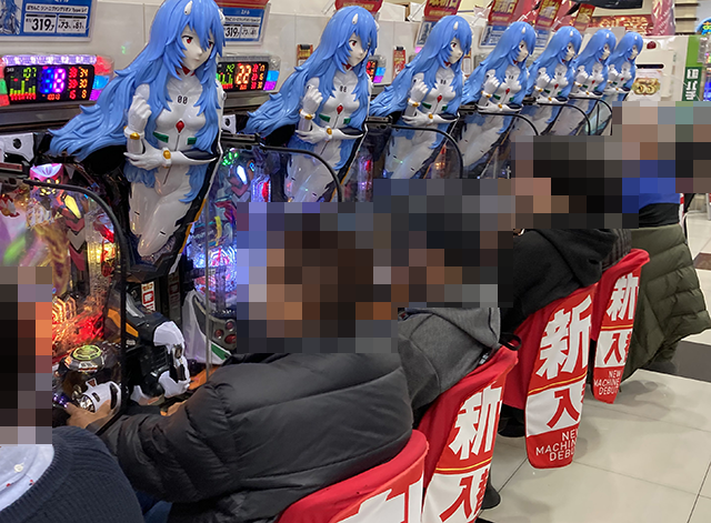 取材時の「ぱちんこ シン・エヴァンゲリオン Type レイ」は、7台中6台が埋まるほどに好評。まわりのプレイヤーからも注目をされていた。