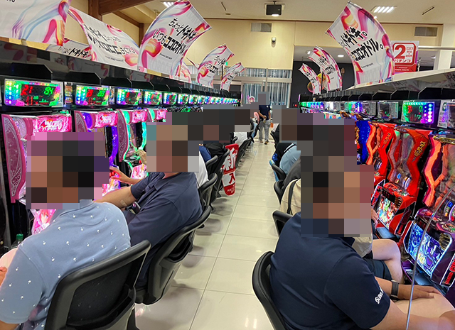 「パチスロ からくりサーカス」や「L ToLOVEるダークネス」などに楽しげなプレイヤーが並び、活気に満ちていました★