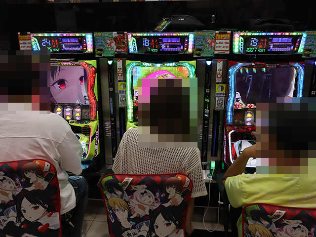 14時半を過ぎた時点で、「パチスロ かぐや様は告らせたい」が満席かつ盛況。