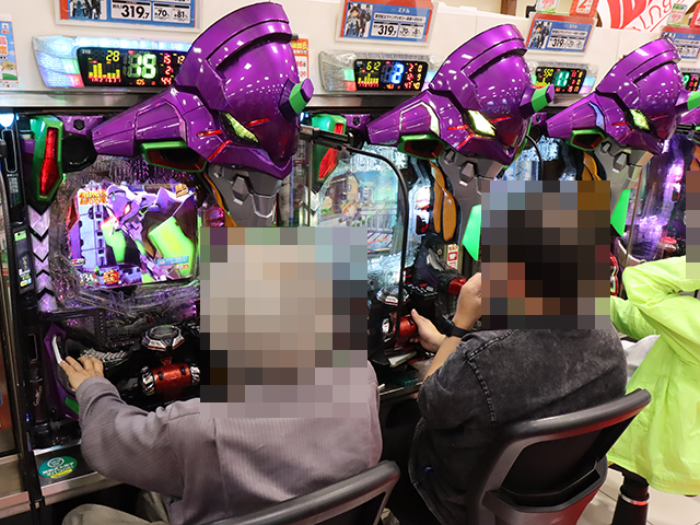 取材時は、3台設置の「ぱちんこ シン・エヴァンゲリオン Type レイ」に空き台ナシ。