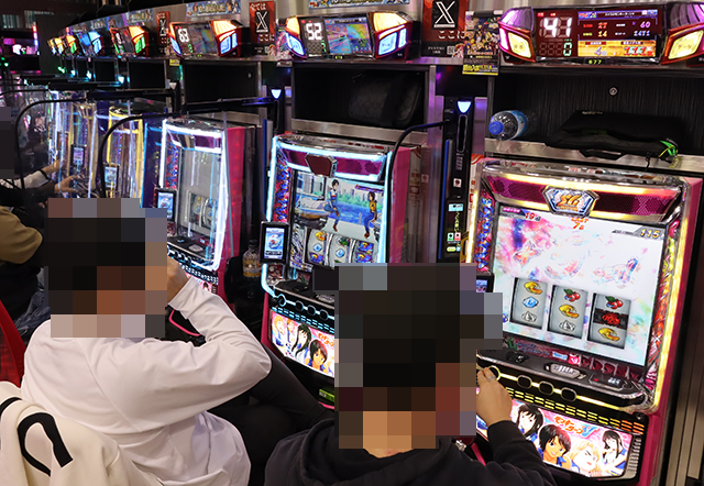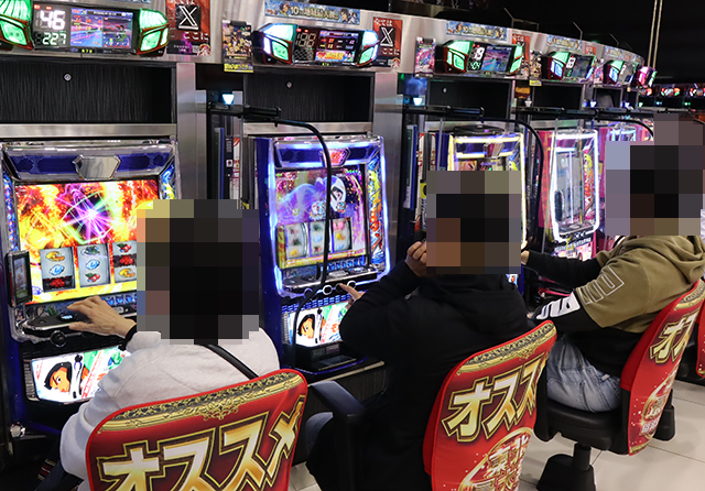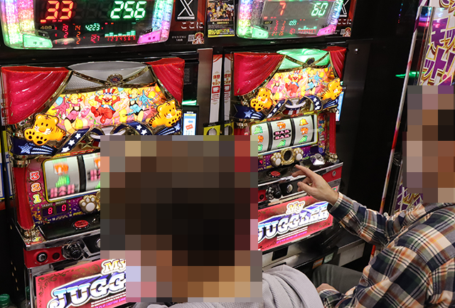 「マイジャグラーⅤ」や「ネオアイムジャグラーEX」などでも遊技を満喫しているような姿がみられ、明るい雰囲気を感じられた。