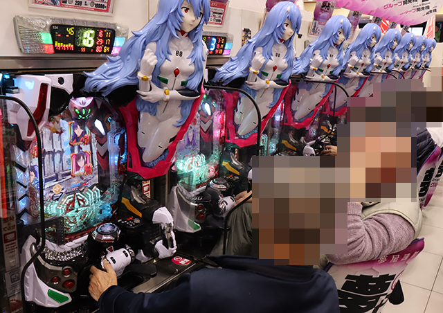 「PAシン・エヴァンゲリオン 99 遊タイム付 ごらくver.」や「P冬のソナタ My Memory Sweet GORAKU Version」などに楽しげなプレイヤーが並び、大きく盛り上がっていた。