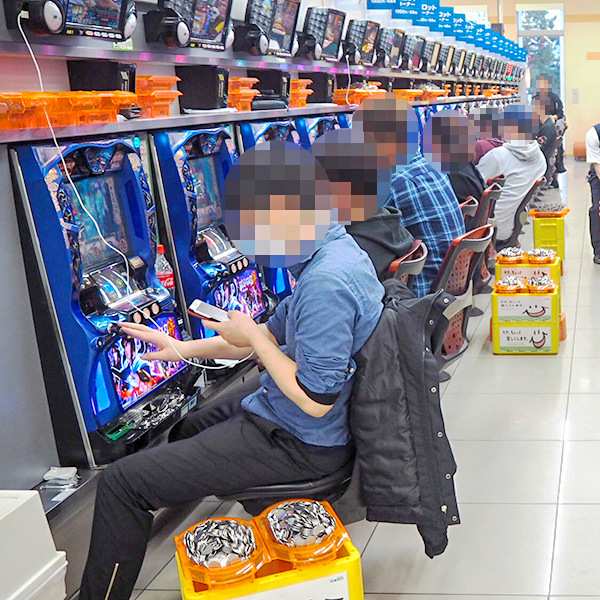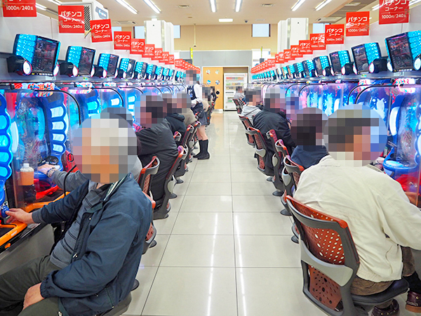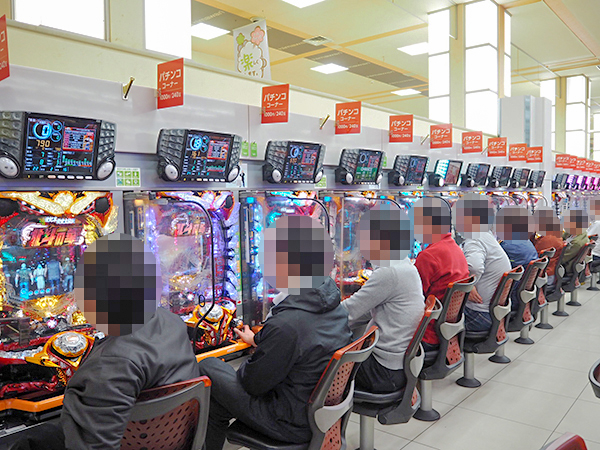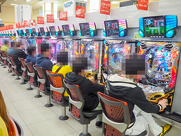 取材時の店内には既に多くのプレイヤーが集結し、パチンコ・パチスロを問わずにぎやかな状況となっていた。