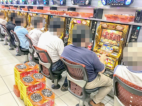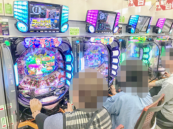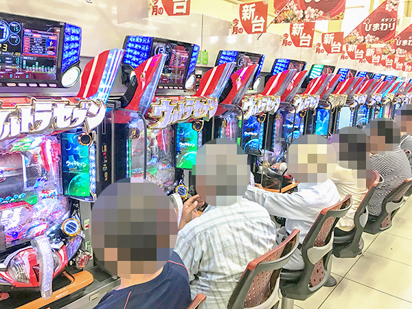 14時半ごろの1000円/240玉パチンコを見てみると、「ぱちんこCR真・北斗無双」や「CRぱちんこウルトラセブン2」で好調なプレイヤーたちを確認。時折見せる嬉しそうな表情が印象に残っている。