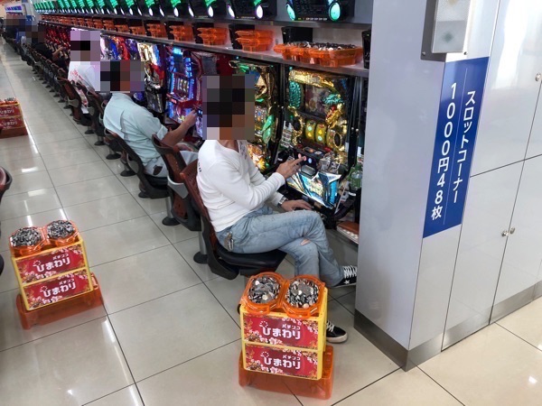 15時を過ぎた店内で、盛り上がりを見せていたのは1000円/48枚パチスロコーナー。