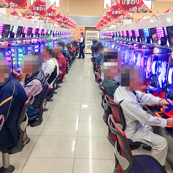 取材時は既に多くのプレイヤーであふれており、パチンコ・パチスロともに嬉しそうな表情でいっぱいだった。