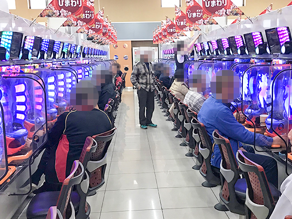 14時ごろの1000円/240玉パチンコを見てみると、「CR大海物語4」や「ぱちんこCR真・北斗無双」が高稼働。プレイヤーの嬉しそうな表情を多数確認している。