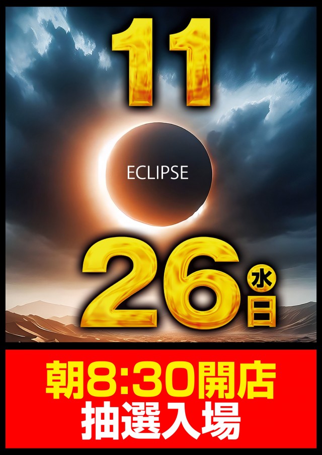 本日👉⑫月⑪日(木)👈抽選入場👽あさ➒時オープン👽