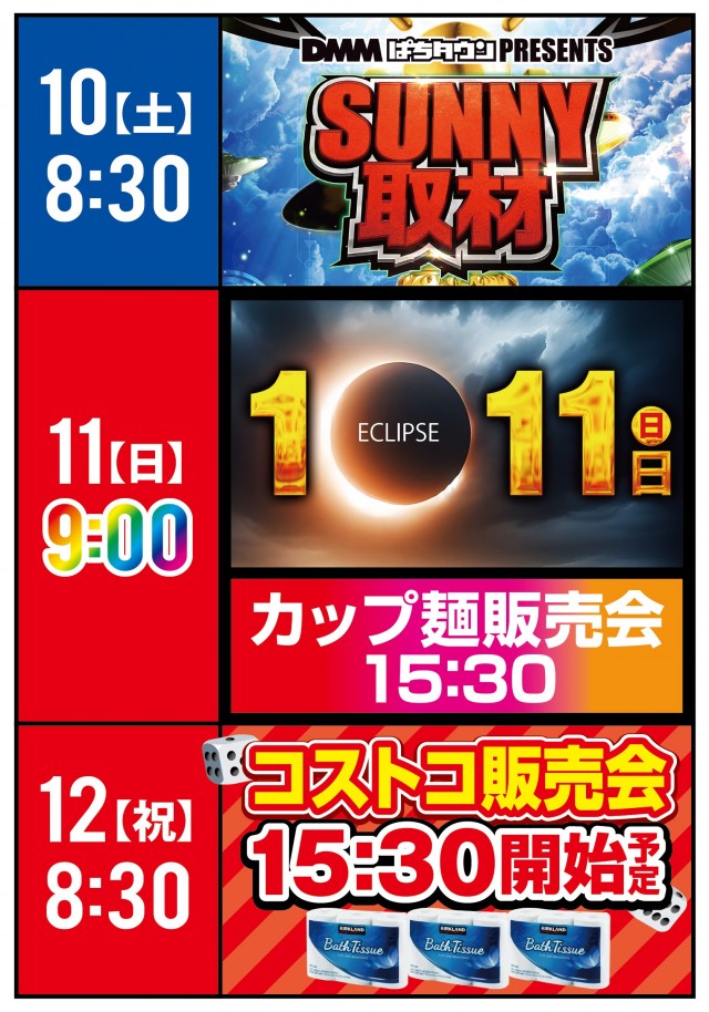 🌈1/19(月)新台入替8時半オープン(開放👉14時予定)🌈
