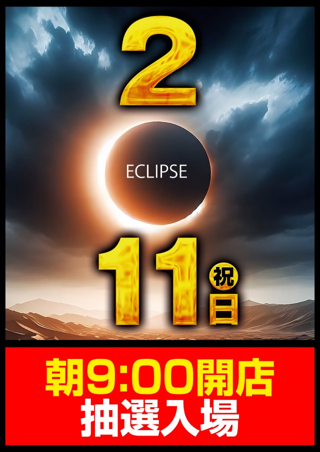 ※開店時間注意※本日👉2月11日(祝)👈抽選入場朝9時開店😋