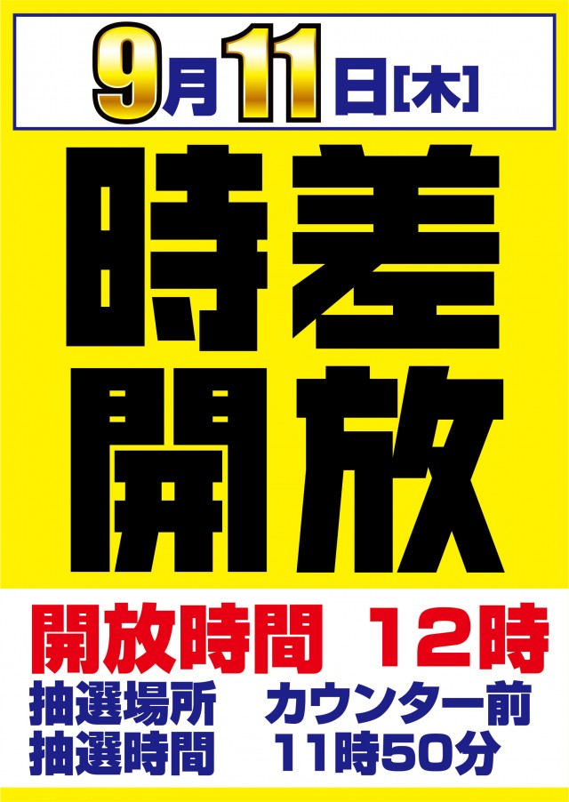 本日👉⑨月⑪日(木)👈抽選入場👽あさ⑧時㉚分オープン👽