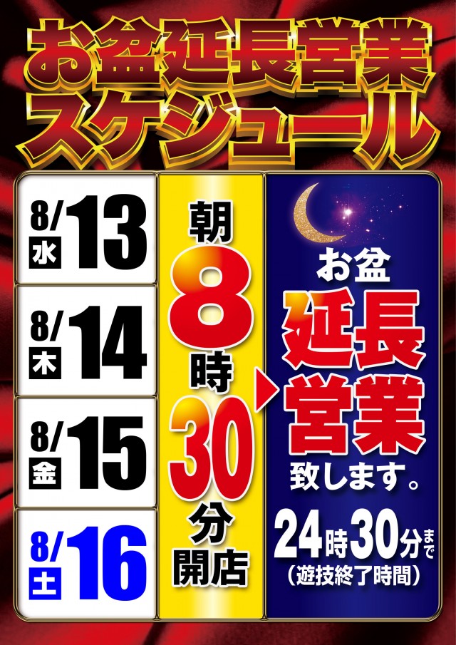 本日👉⑧月⑬日(水)から⑯(土)まで👈お盆延長営業中🌛