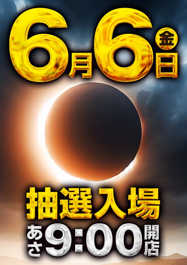 本日⑤/㉖(月)🌞抽選入場あさ9時開店🎵総付け配布します🌻