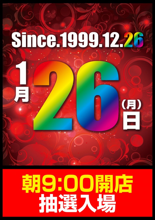 ※開店時間注意※本日👉1月26日(月)👈抽選入場朝9時開店😋